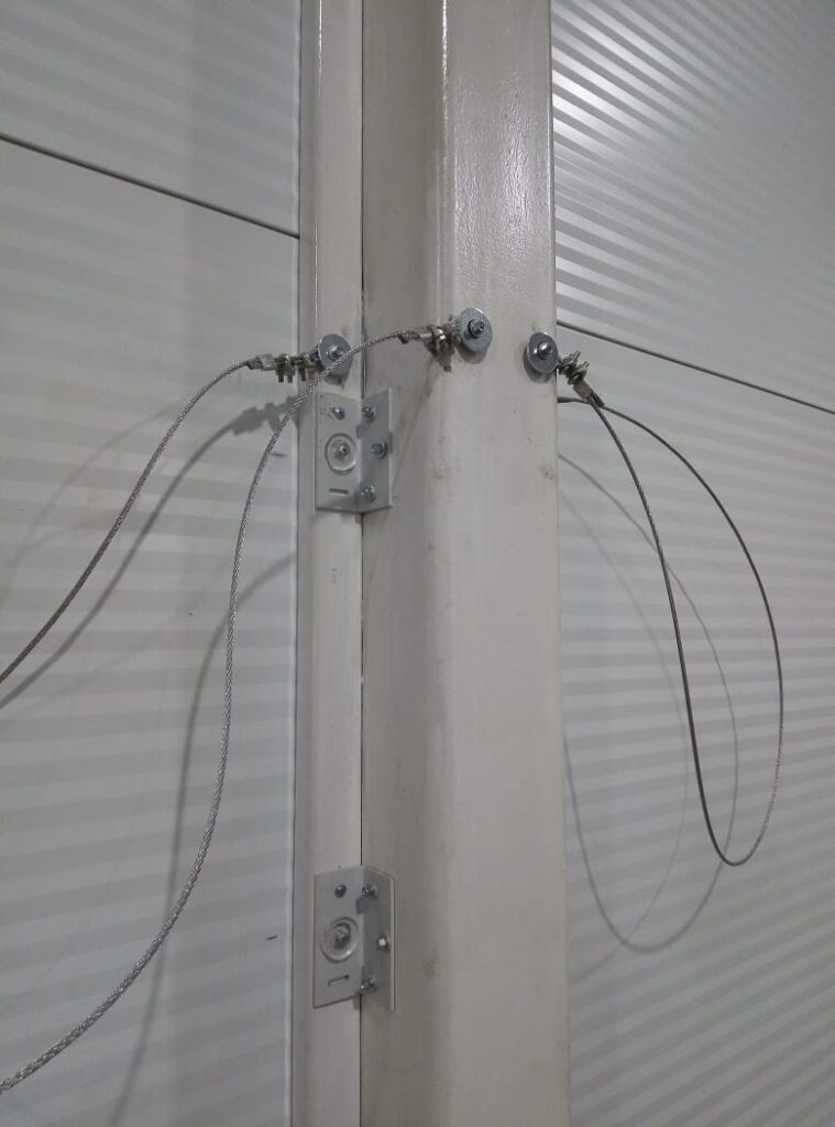 В целях усовершенствования общей безопасности и исключения травматизма персонала, конструкция легкосбрасываемых сэндвич панелей имеет специальное тросово-страховочное устройство. Его задача – удержать смещаемые элементы на тросах после освобождения проема и предотвратить вероятные разрушения.